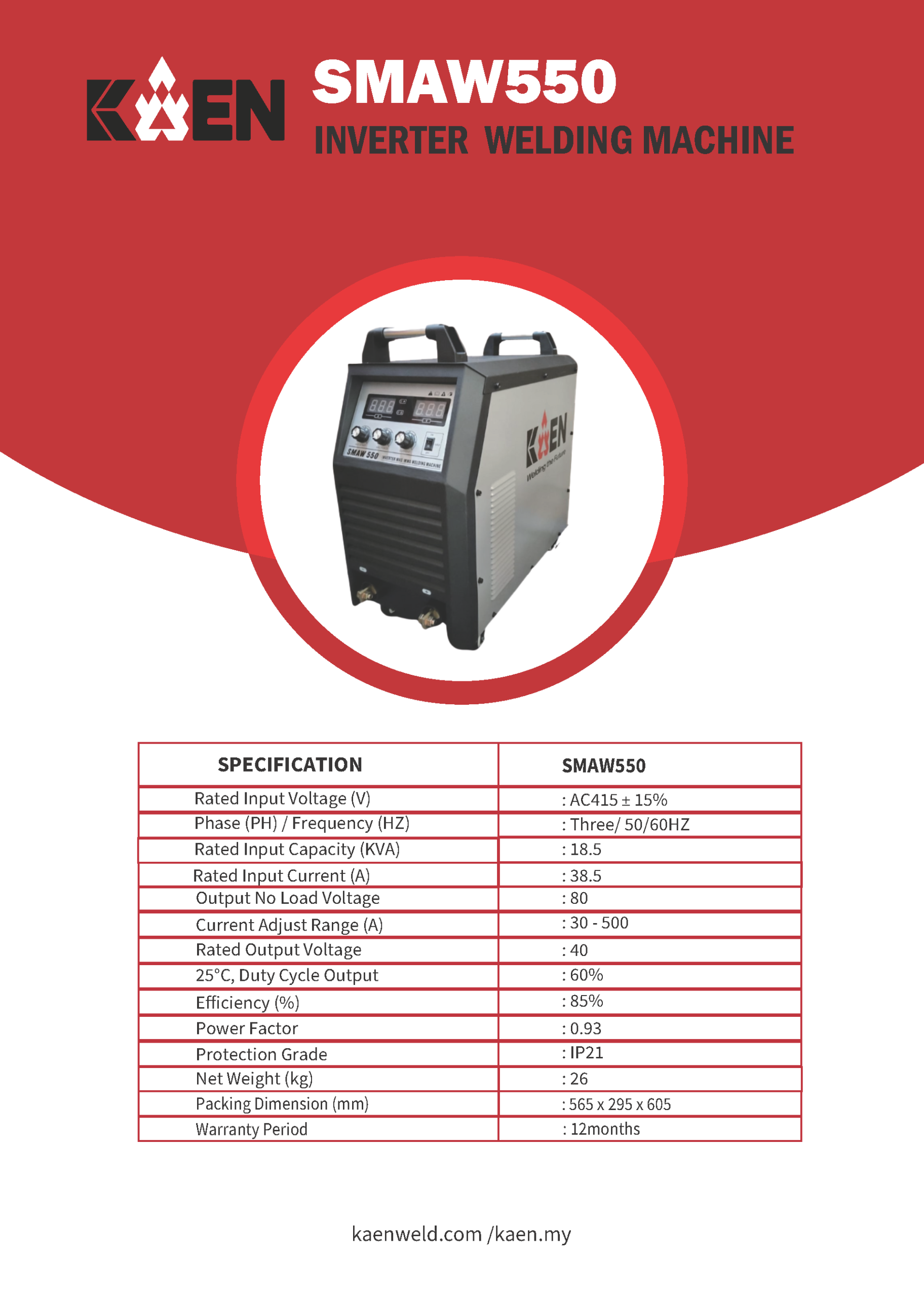 - The KAEN SMAW550 delivers excellent arc performance with an extra-light, compact, and portable design that makes it perfect for everyday use. Built with over-current and overload protection, it ensures safe and stable welding even in challenging environments.